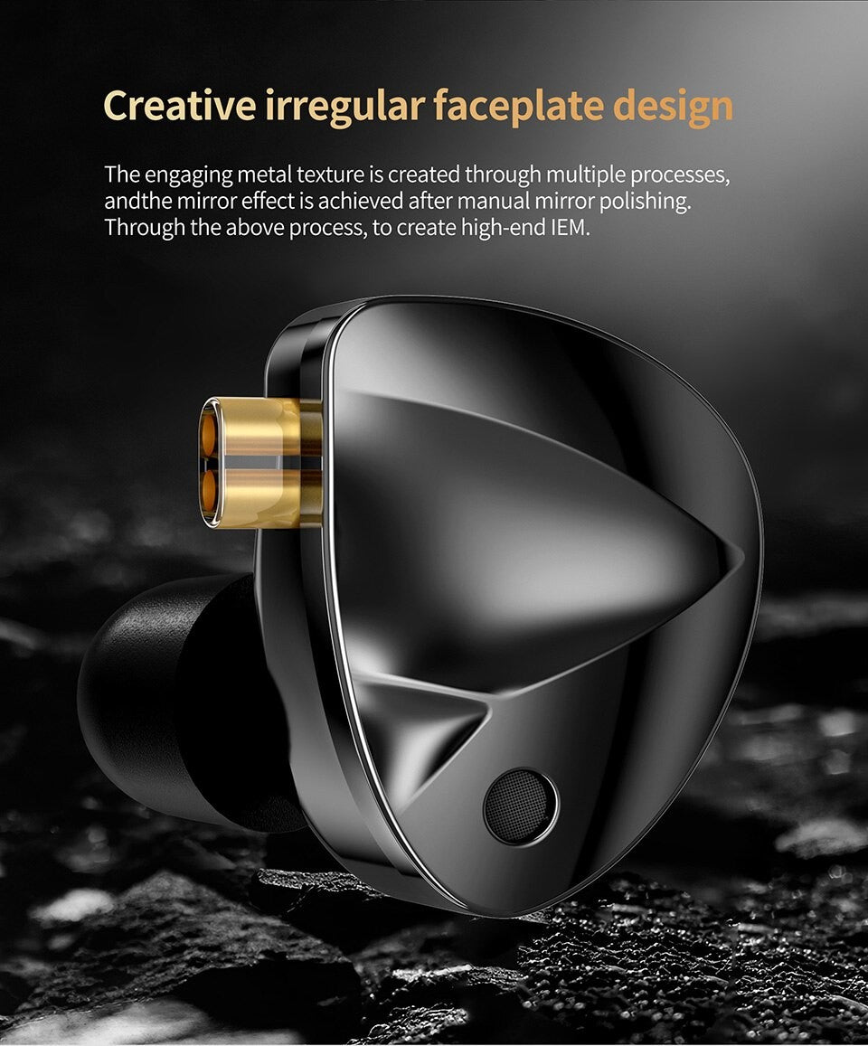 A textura de metal envolvente é criada através de vários processos eO efeito de espelho é alcançado após o polimento manual do espelho. Através do processo acima, para criar IEM high-end.